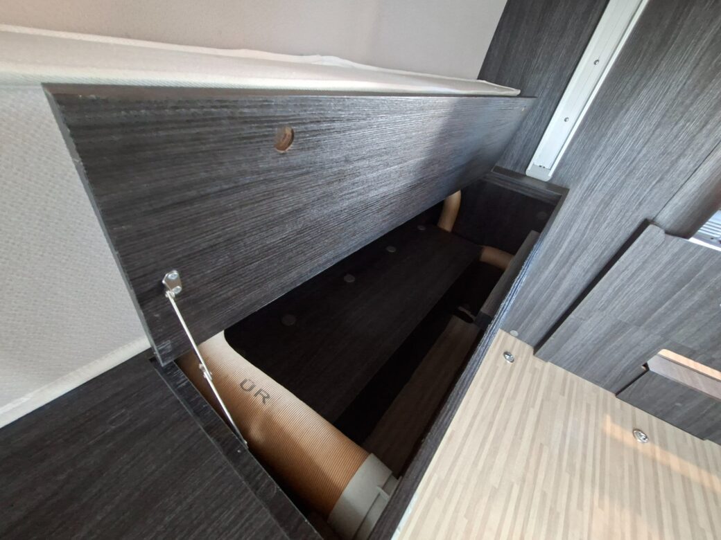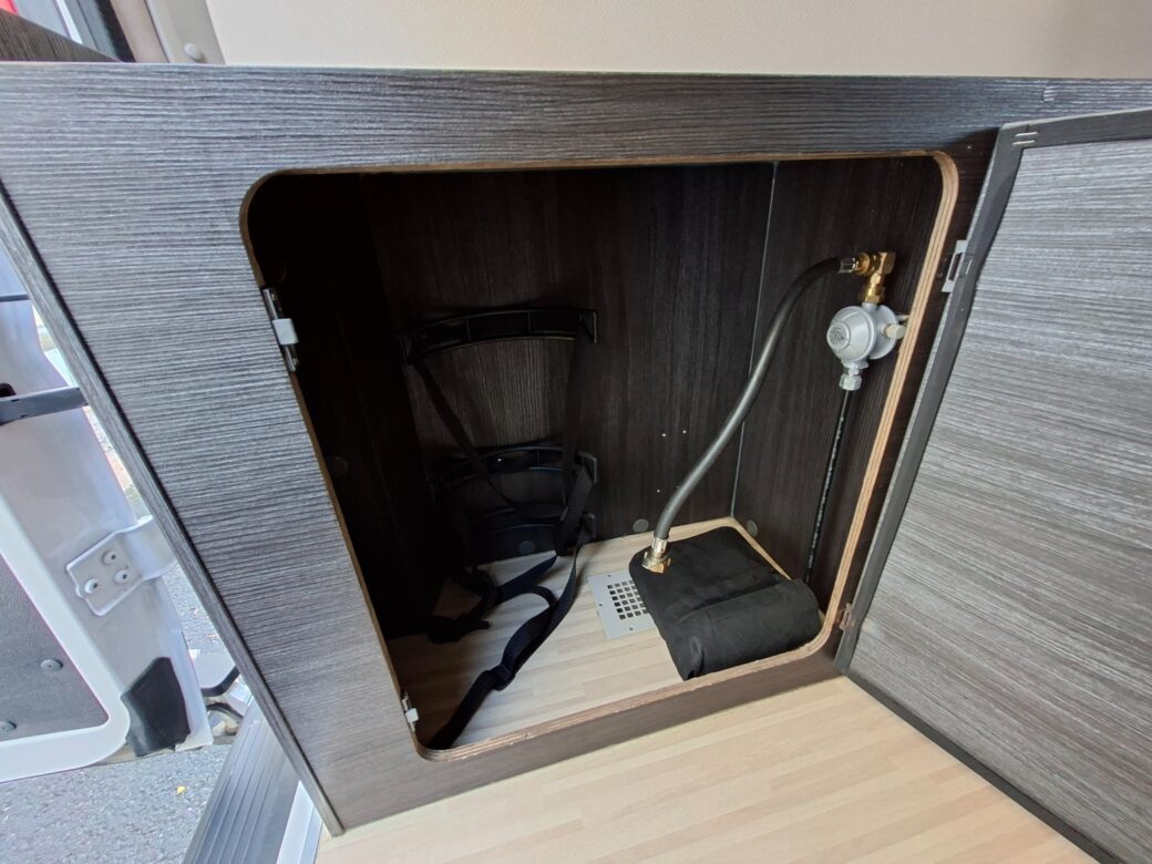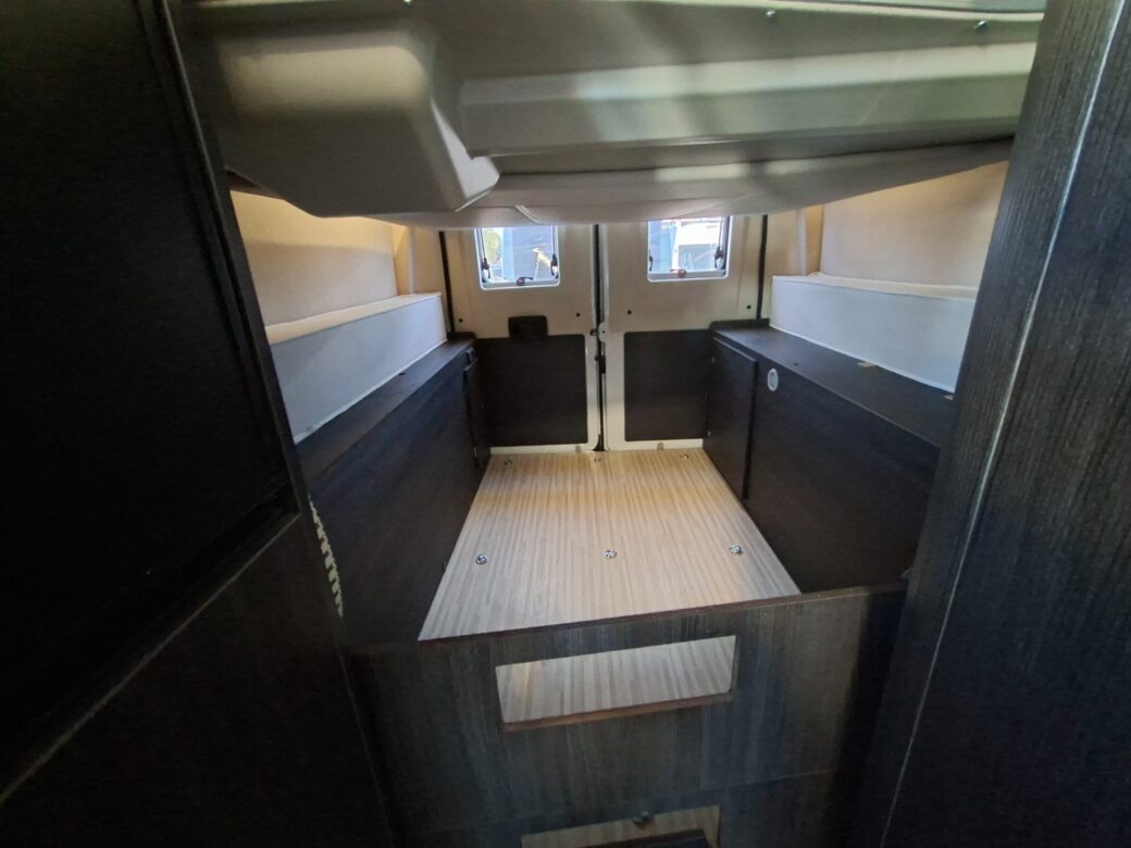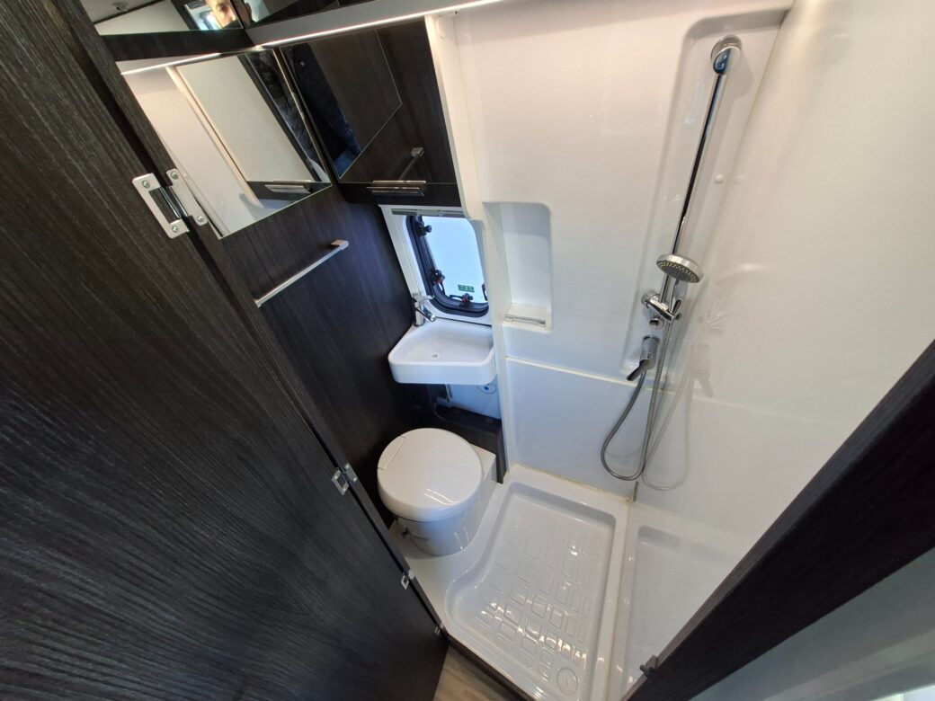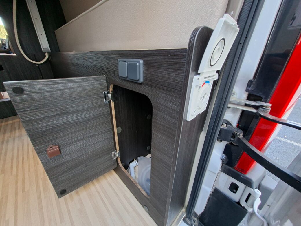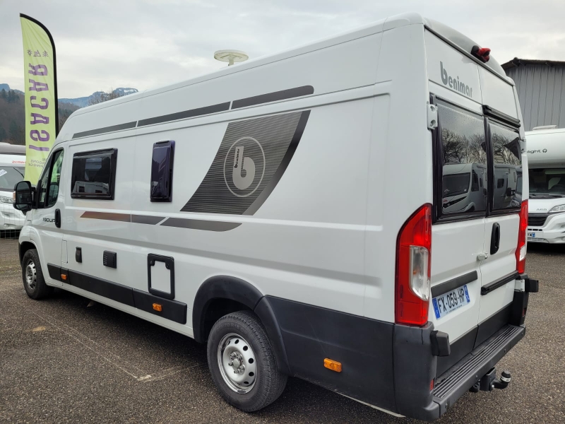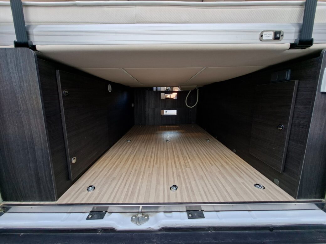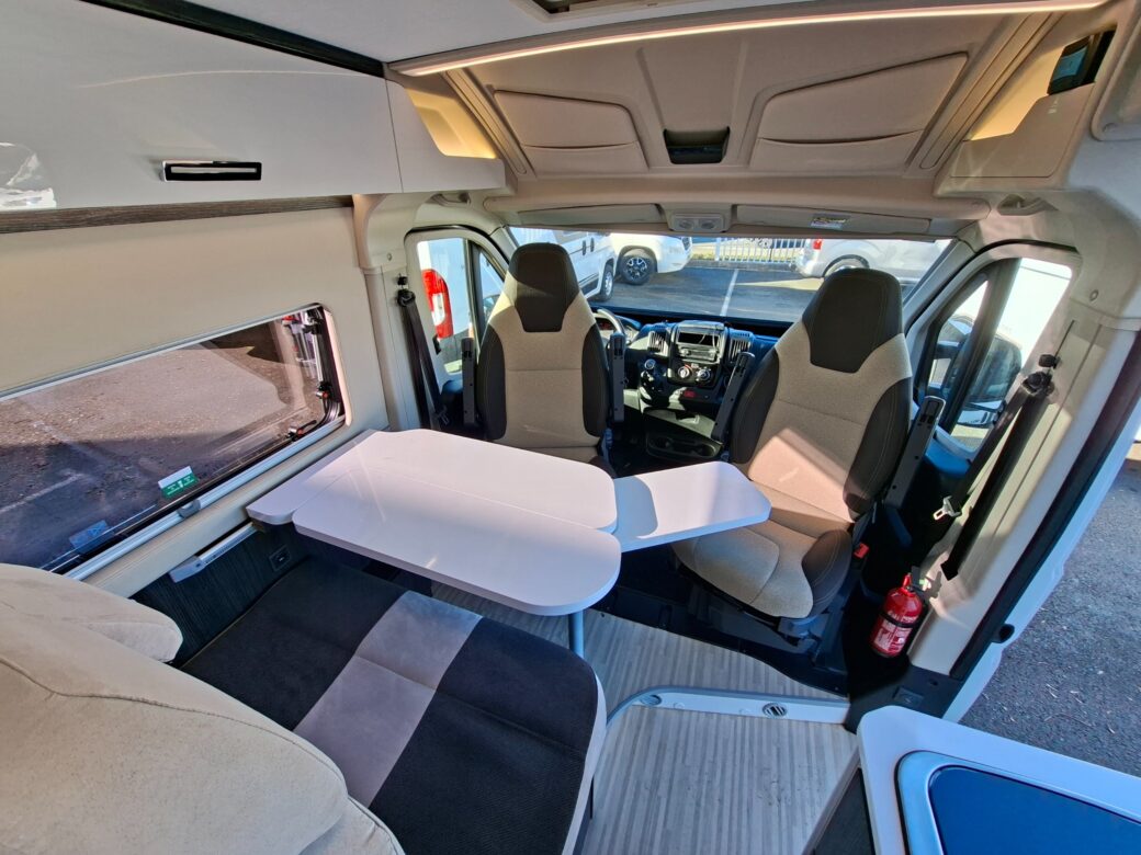 Le 190Up est un fourgon aménagé sur base Fiat Ducato, il possède un lit longitudinal réglable pour offrir une grande soute, un bloc cuisine avec réfrigérateur (12V / 220V / Gaz) et d’une salle de bain avec douche et toilettes.