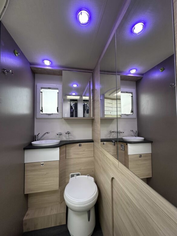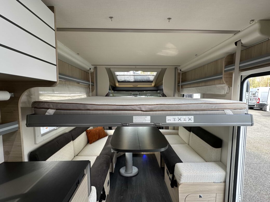 Il a également pour particularité d’offrir le seul salon face/face du marché avec 4 places carte grise, le tout permettant un lit de pavillon électrique de 160cm !!
