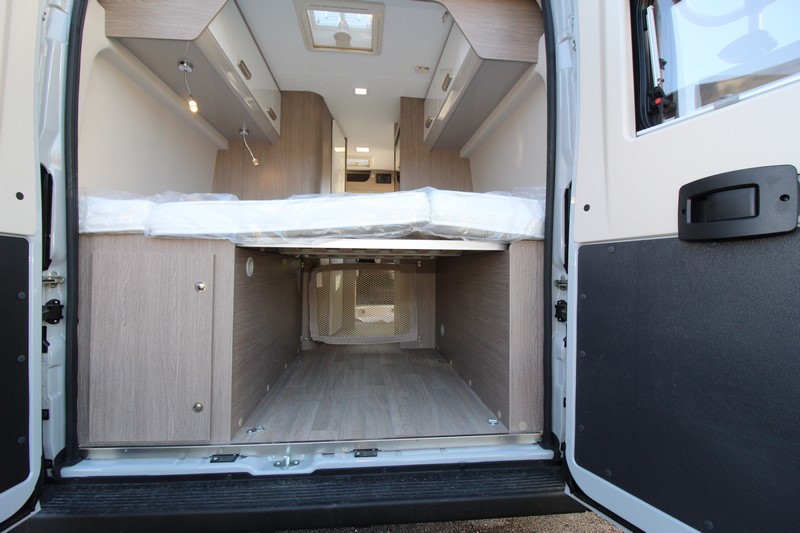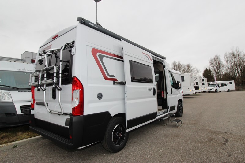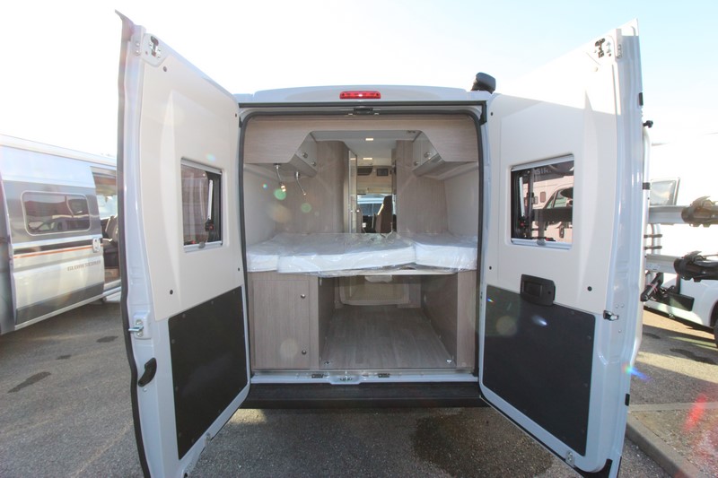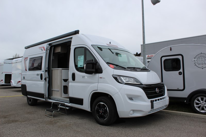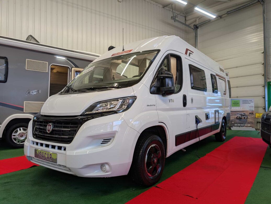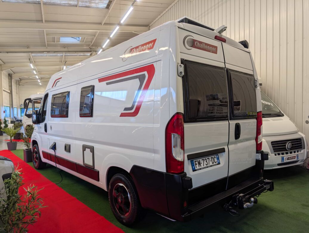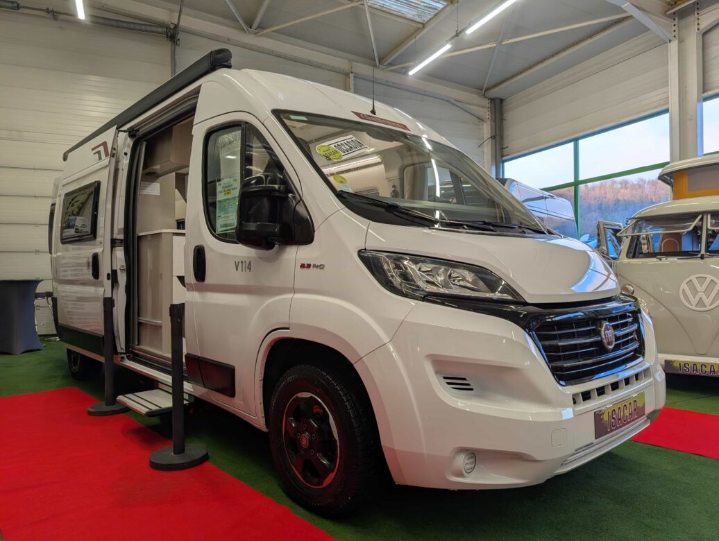 Modèle phare de la gamme Vany du constructeur français Challenger, le V114 Start Edition est un fourgon aménagé sur base Fiat Ducato, lit transversal sur soute, un bloc cuisine avec réfrigérateur (12V / 220V / Gaz) et d’une salle de bain avec douche et toilettes.