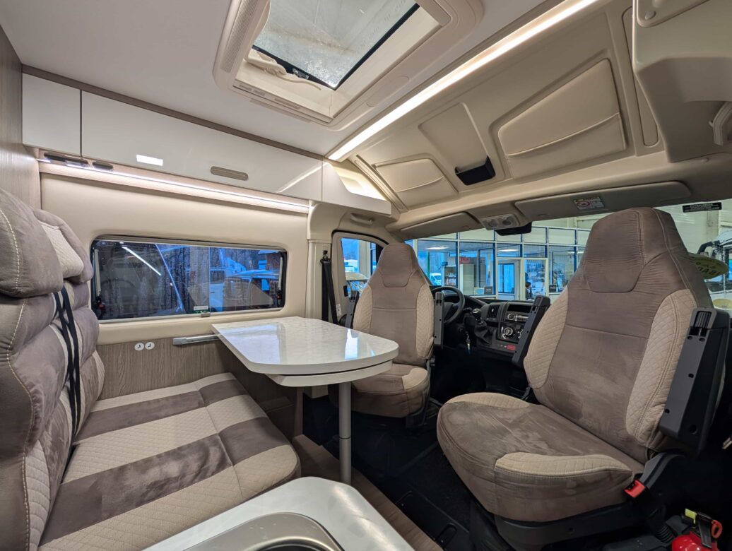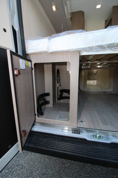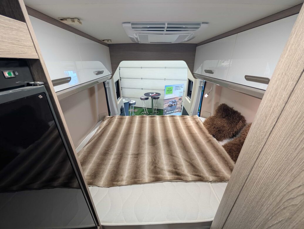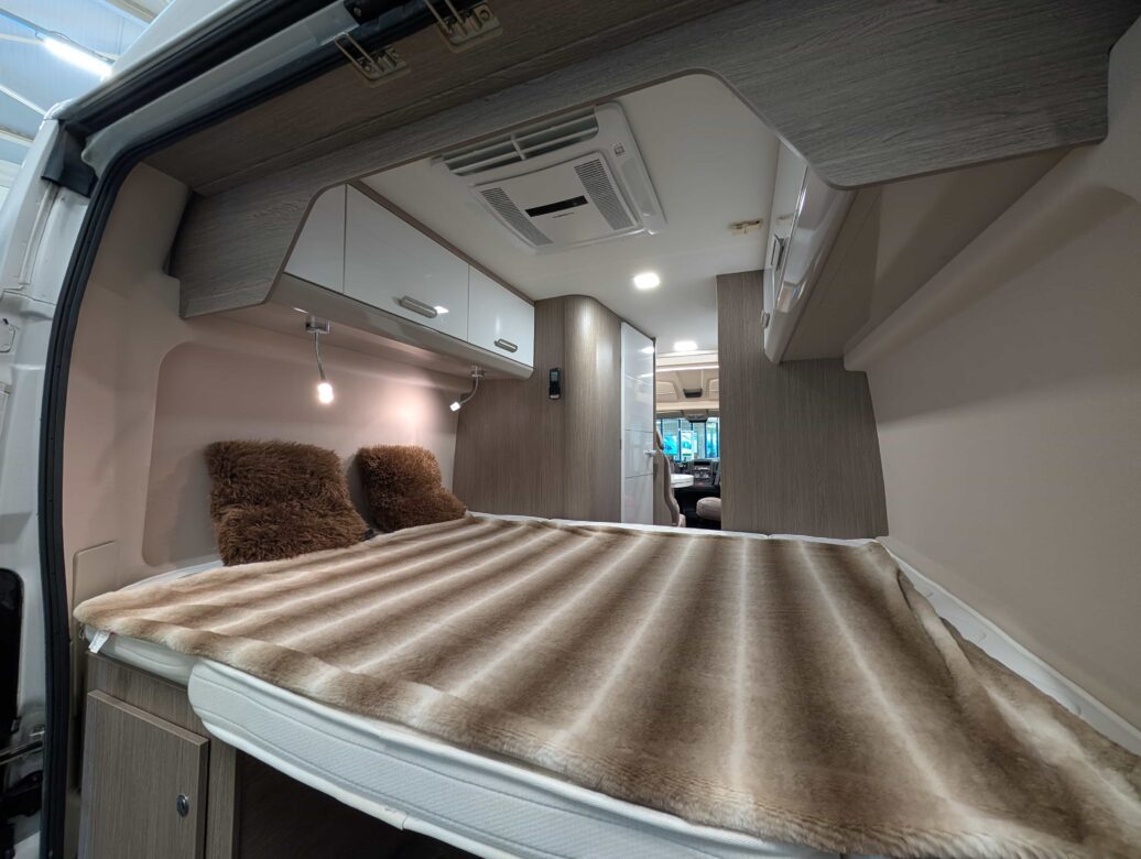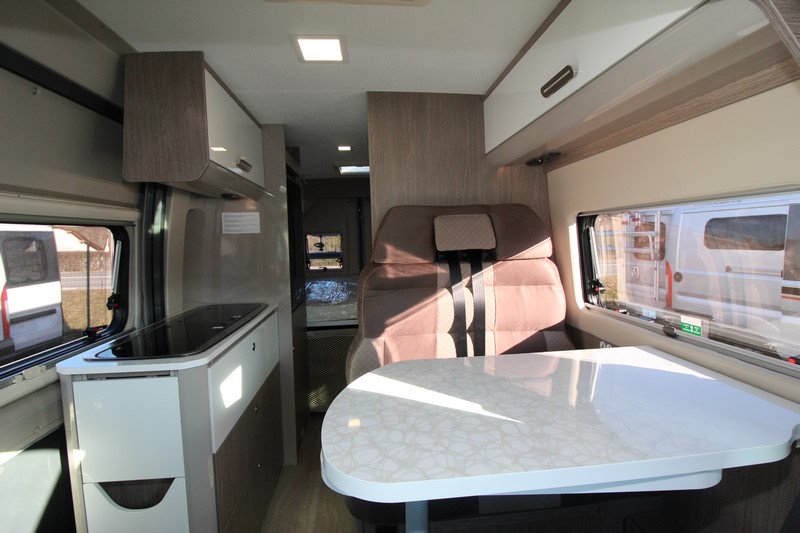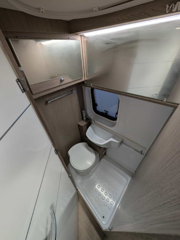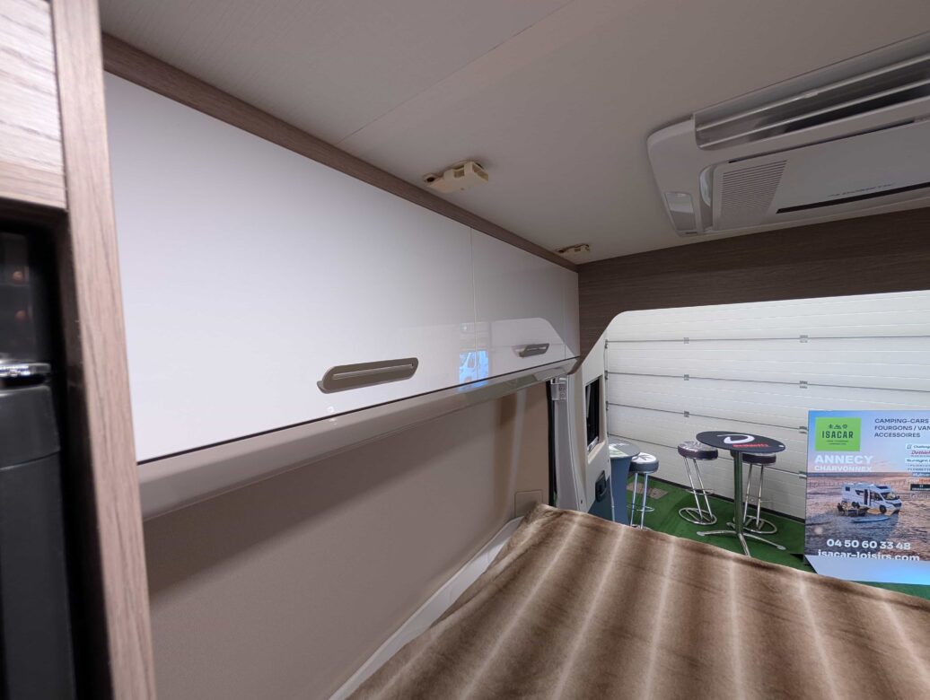 Modèle phare de la gamme Vany du constructeur français Challenger, le V114 Start Edition est un fourgon aménagé sur base Fiat Ducato, lit transversal sur soute, un bloc cuisine avec réfrigérateur (12V / 220V / Gaz) et d’une salle de bain avec douche et toilettes.