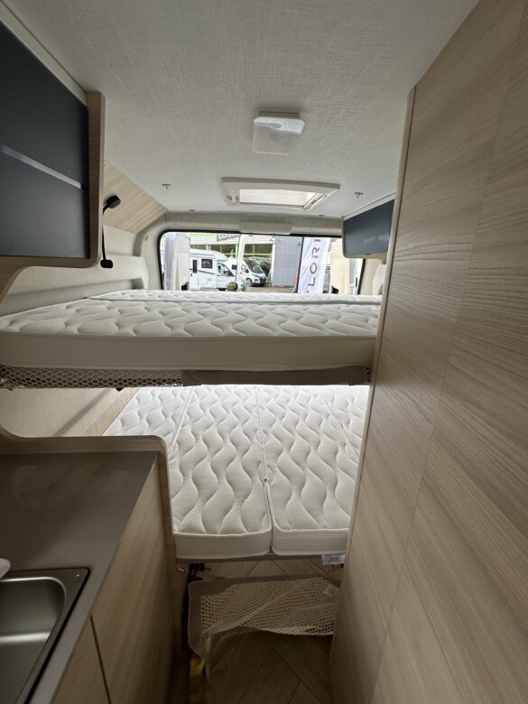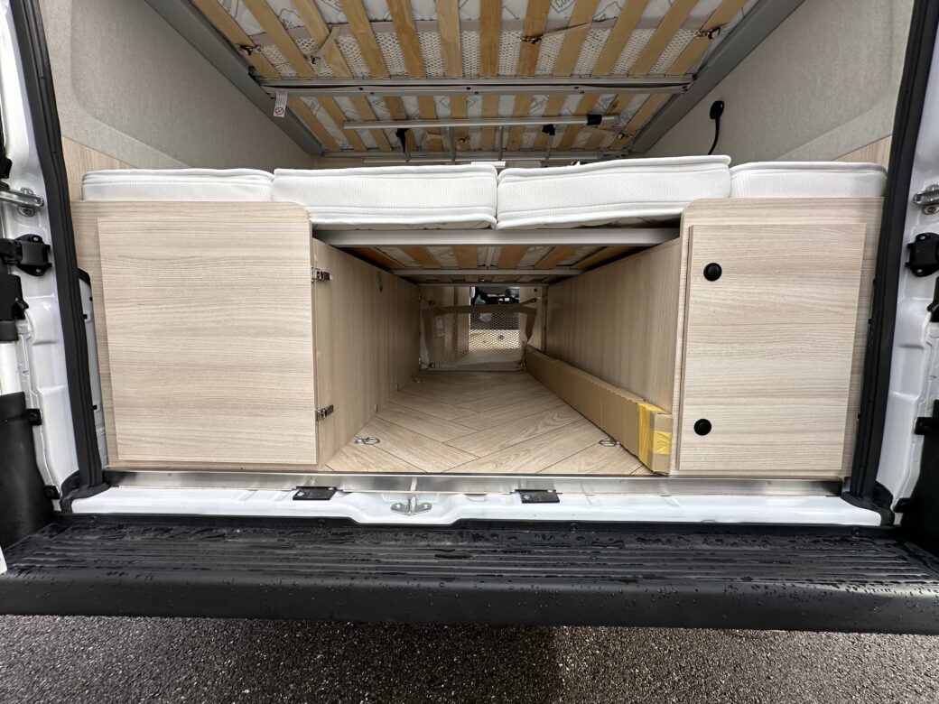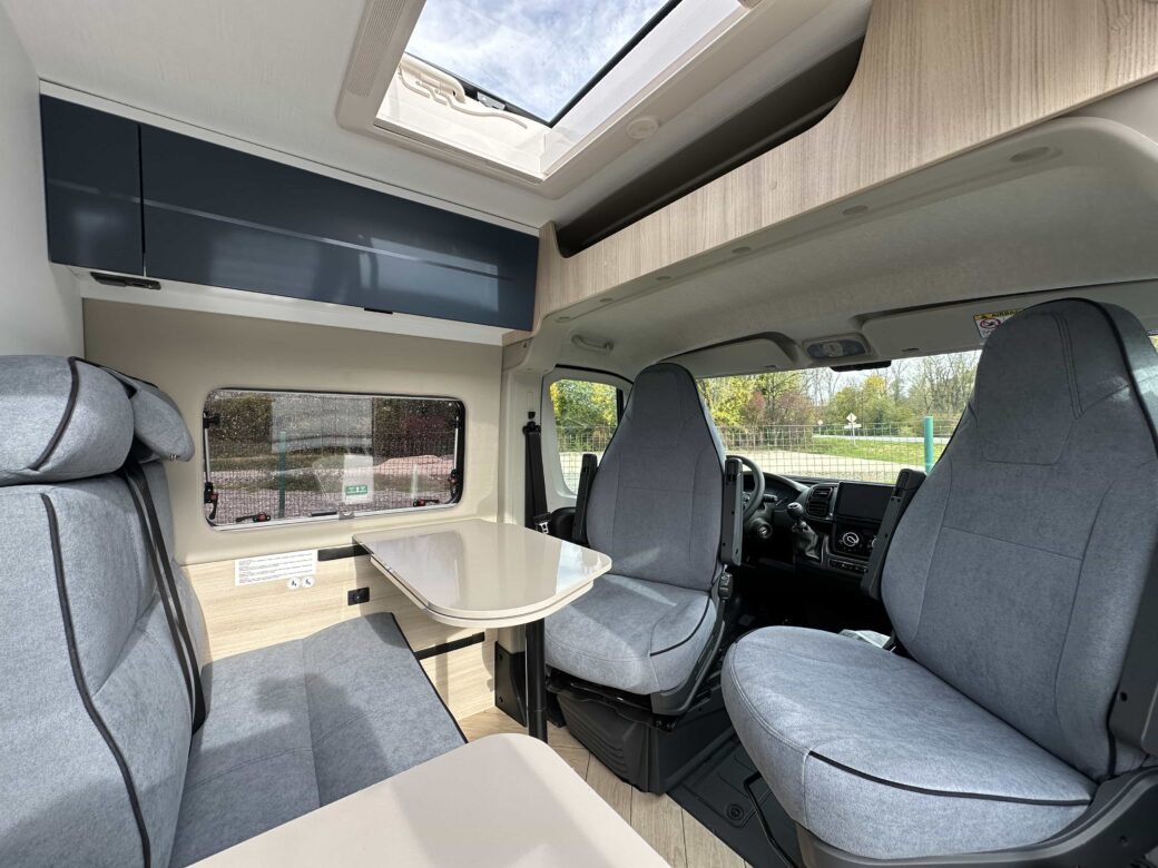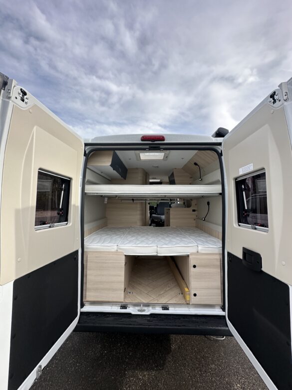 Le Pack Accessoires propose un store extérieur, un panneau solaire, et des rideaux occultants pour la cabine. Le van est également équipé d’un système Isofix pour sécuriser les sièges enfants, de ports USB pour la recharge, ainsi que d’une marche électrique.