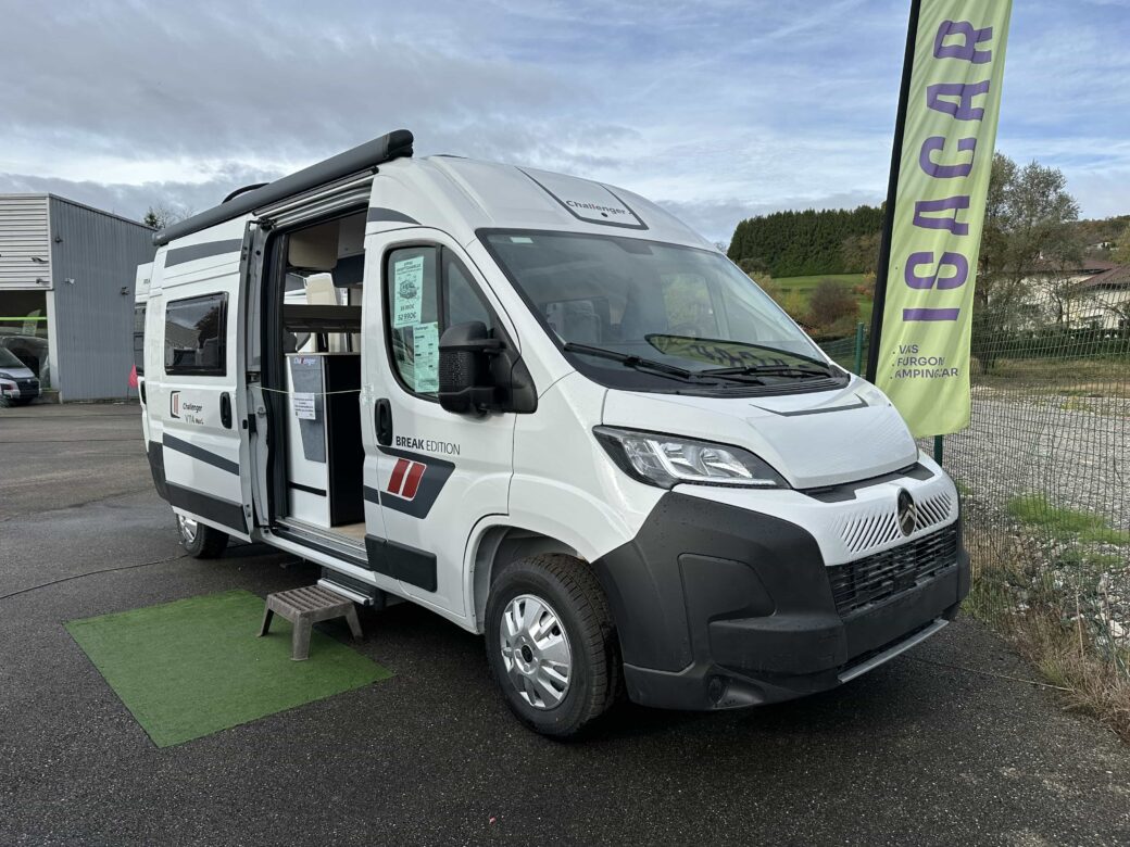 Le Challenger V114M Break Edition est un fourgon aménagé conçu pour les voyages en famille, offrant confort et fonctionnalité dans un espace compact. Ce modèle 2026 repose sur un châssis Citroen Jumper, avec un moteur diesel 2,2L de 140 chevaux, conforme aux normes Euro 6D. D’une longueur de 5,99 mètres, il propose 4 places assises et 4 couchages, avec lits superposés arrière et modularité permettant d’ajuster l’espace selon le nombre d’occupants.