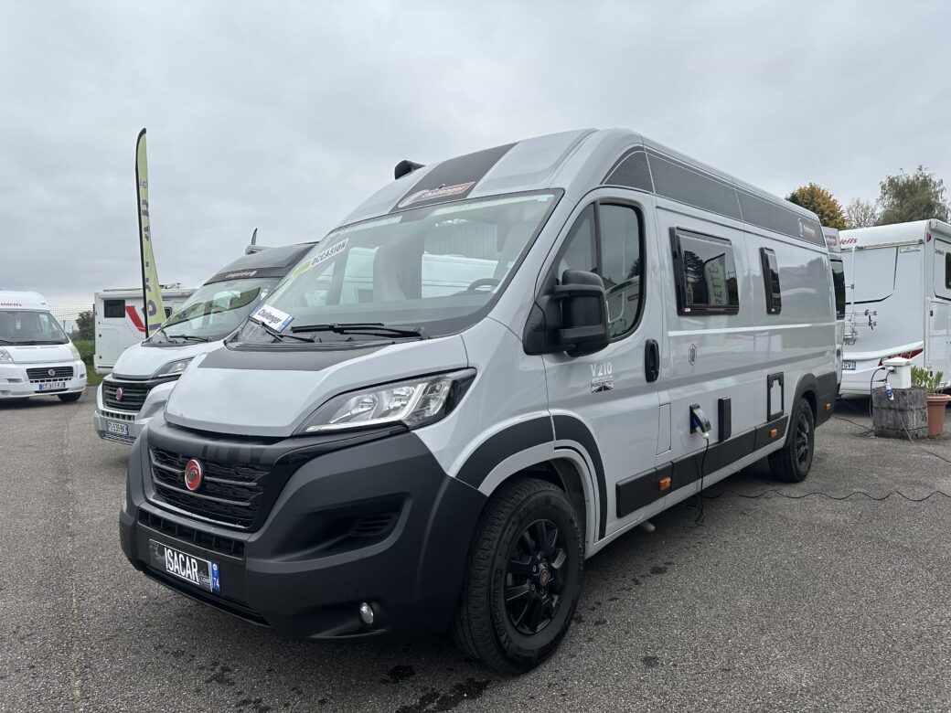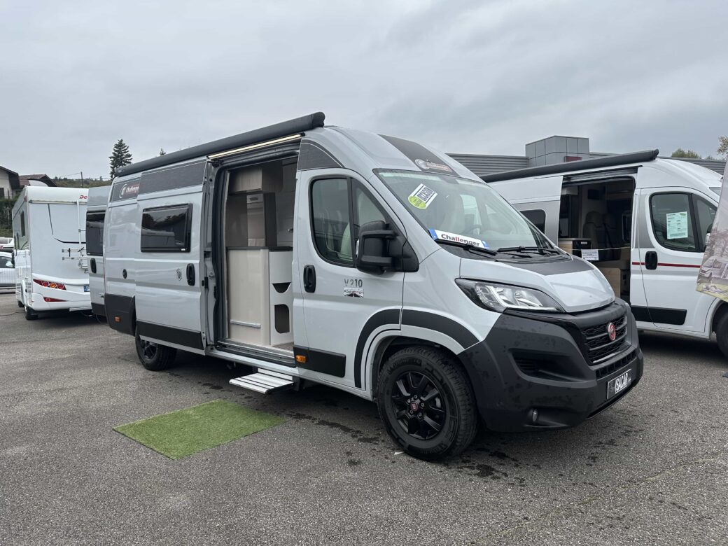 Nouveau modèle phare de la gamme Van du constructeur français Challenger, le V210 Sport Edition est un fourgon aménagé sur base Fiat Ducato, il possède un lit logitudinal réglable pour offrir une grande soute, un bloc cuisine avec réfrigérateur (12V / 220V / Gaz) et d’une salle de bain avec douche et toilettes.