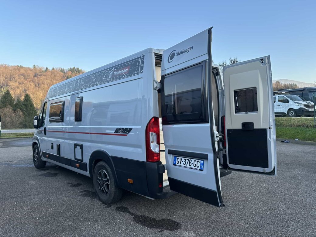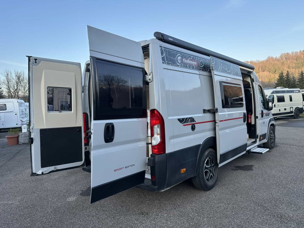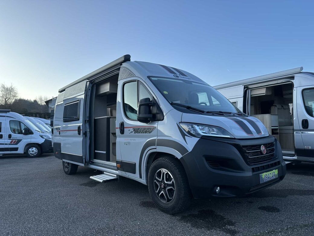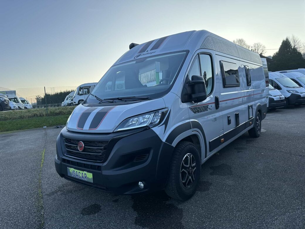 Nouveau modèle phare de la gamme Van du constructeur français Challenger, le V210 Sport Edition est un fourgon aménagé sur base Fiat Ducato, il possède un lit logitudinal réglable pour offrir une grande soute, un bloc cuisine avec réfrigérateur (12V / 220V / Gaz) et d’une salle de bain avec douche et toilettes.