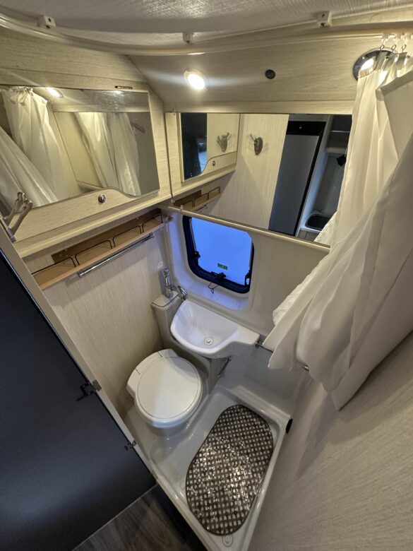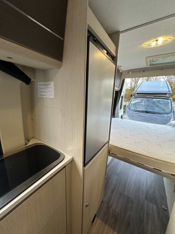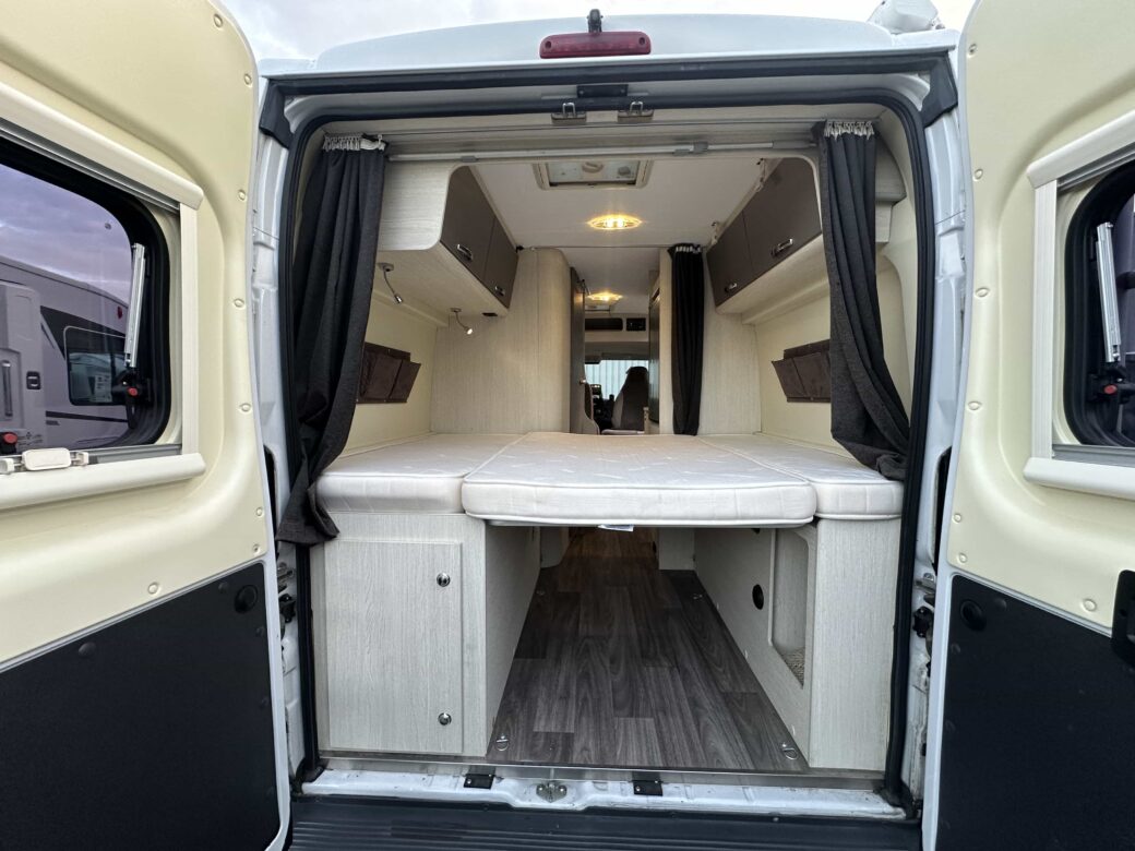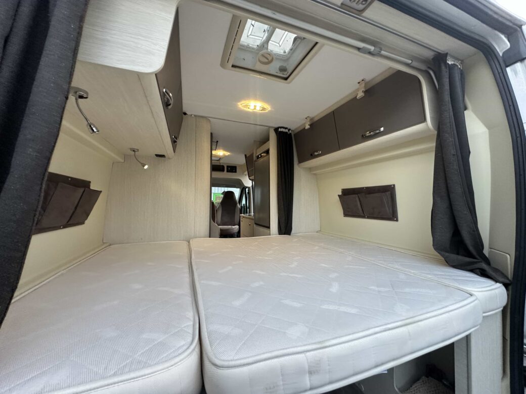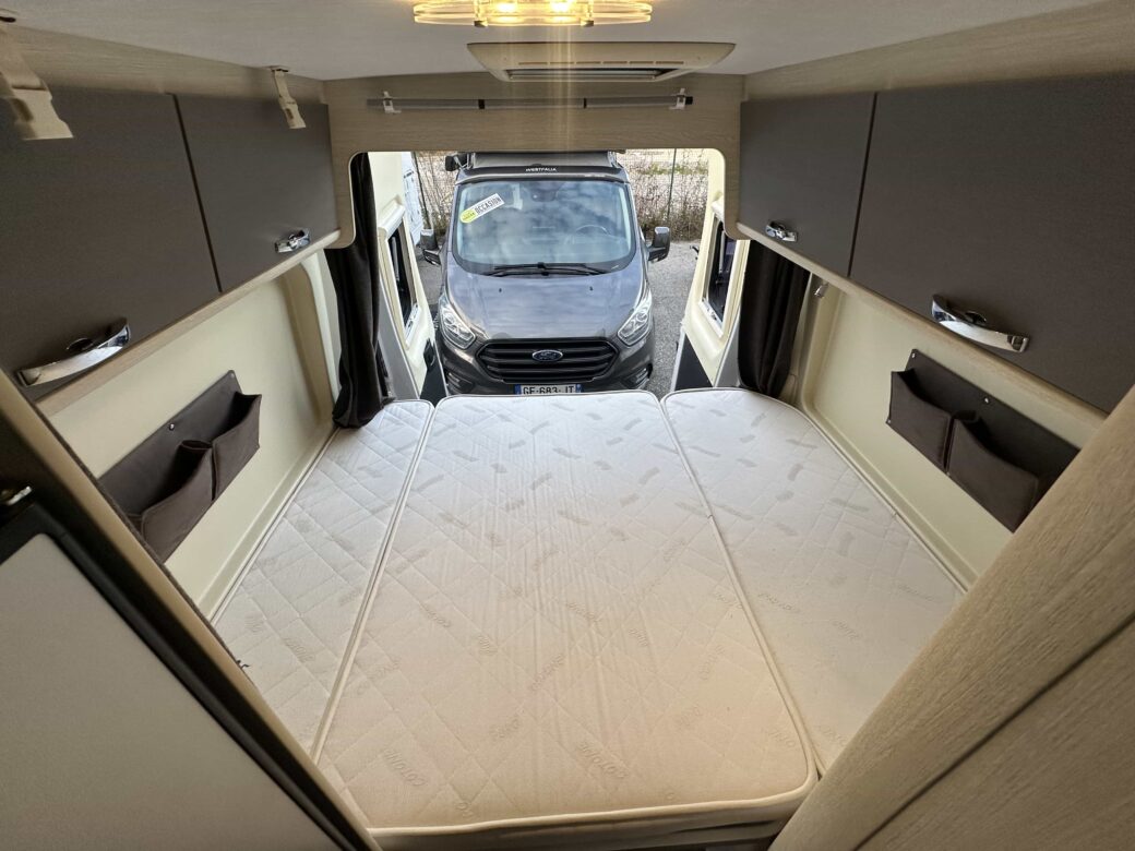 Modèle phare de la gamme du constructeur français Chausson, le V594 est un fourgon aménagé de 5.99m sur base Fiat Ducato, il a un lit transversal transversal sur soute, un bloc cuisine avec réfrigérateur (12V / 220V / Gaz) et d’une salle de bain avec douche et toilettes.