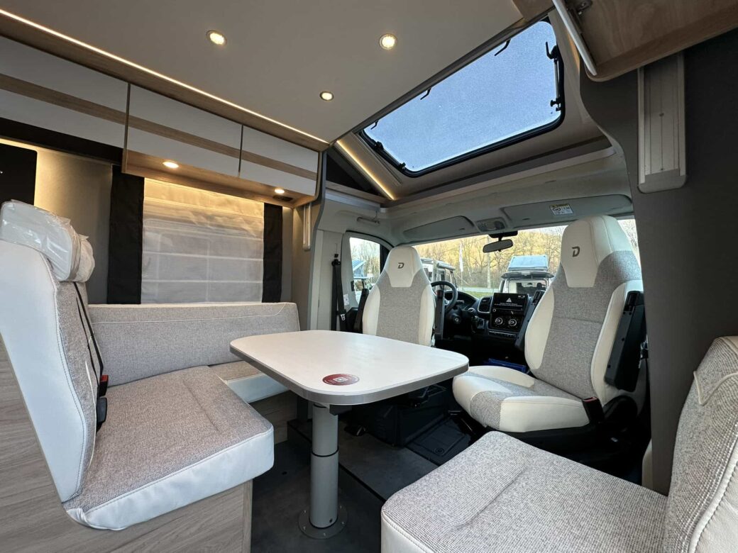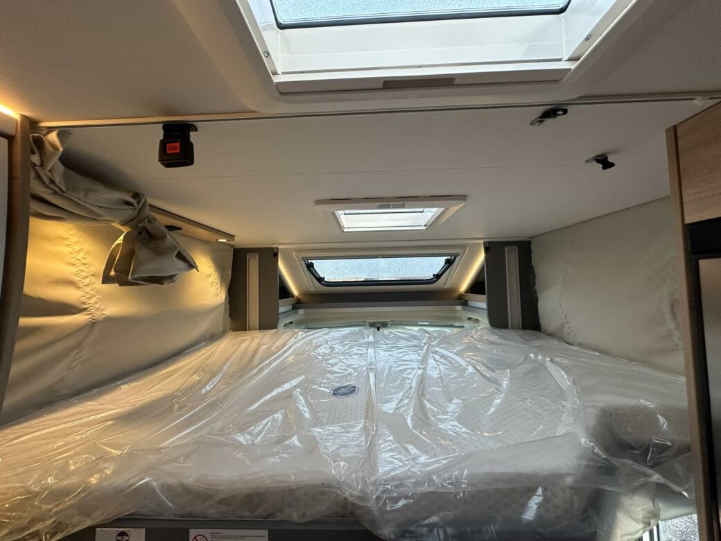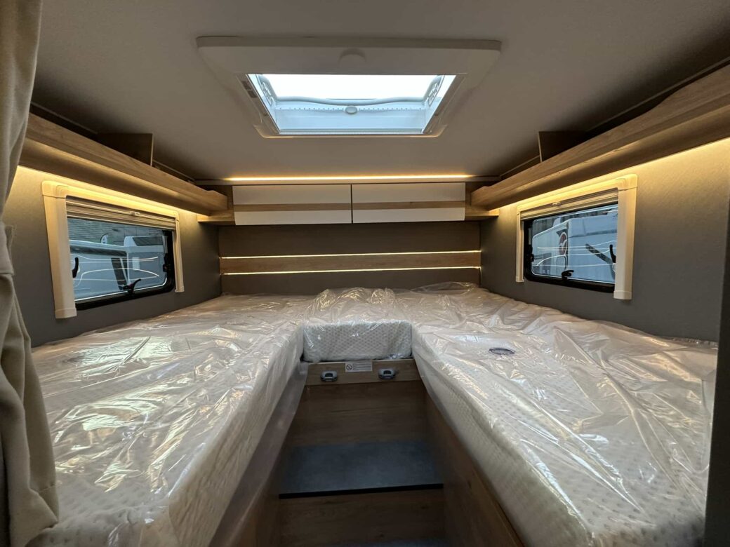 Le Dethleffs Just Camp T7052 EB Active dispose d'une implantation avec lit central sur soute offrant un parfait accès au couchages.