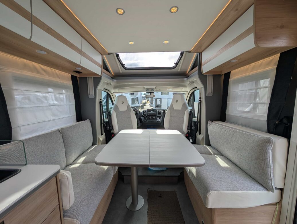Le Dethleffs Just Camp Edition T7052 DBL dispose d'une implantation avec lit central sur soute offrant un parfait accès au couchages.