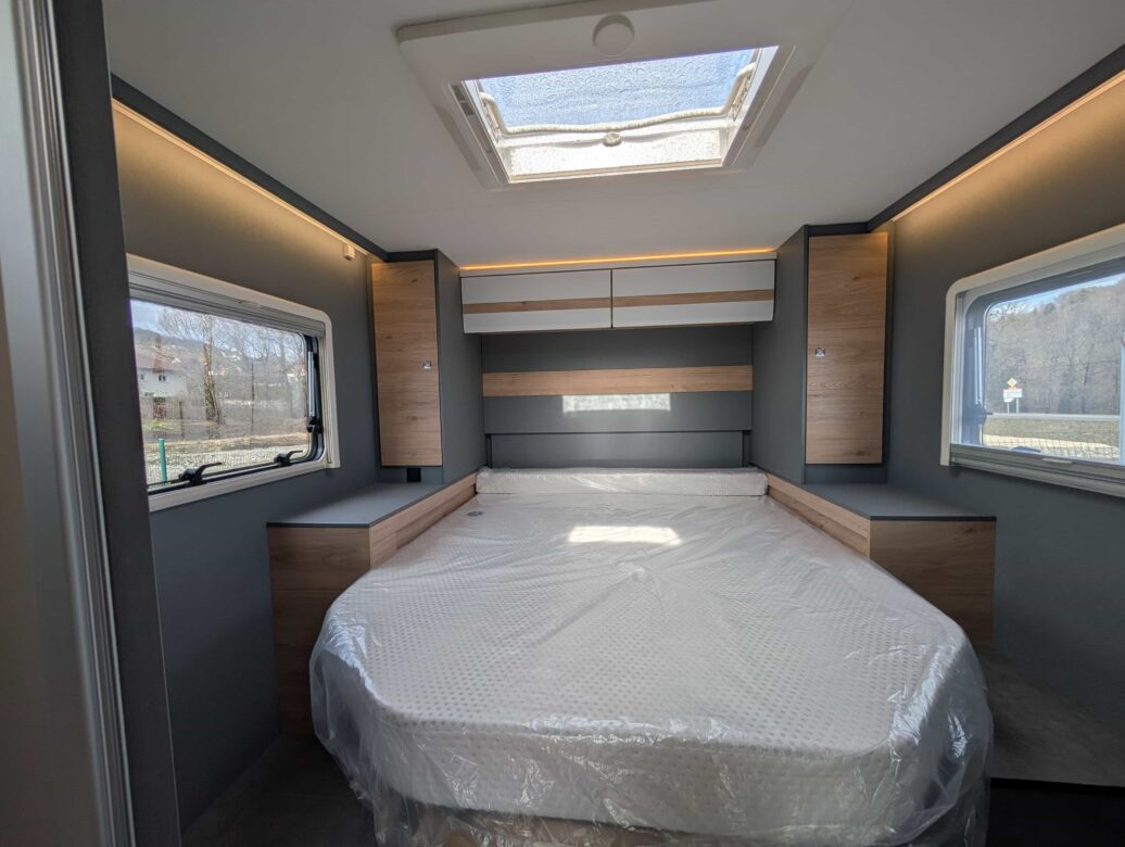 • Lits : Lit central à l’arrière, lit de pavillon électrique.