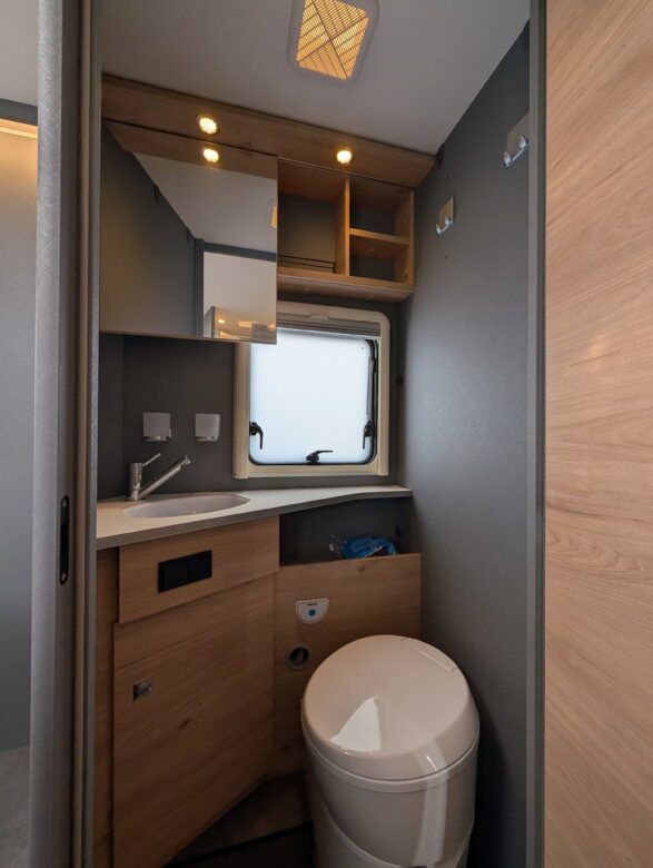 • Salle de bain : Une salle de bain séparée avec toilettes, douche et lavabo, souvent conçue pour optimiser l’espace tout en maintenant le confort.