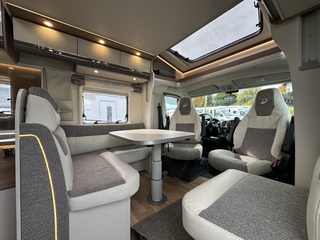 Sur une implantation connue de tous, le Dethleffs Trend T7057 DBM se démarque de sa concurrence par de très grand espaces intérieurs ainsi qu’un excellent rapport qualité-prix-équipement.