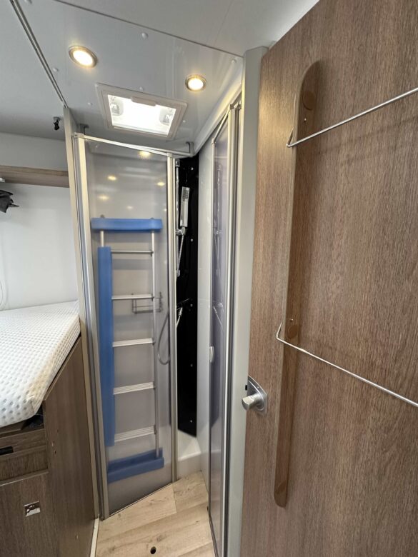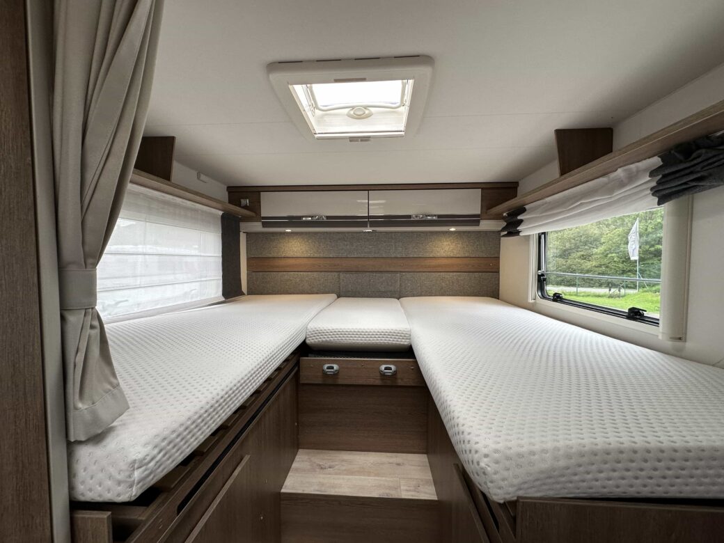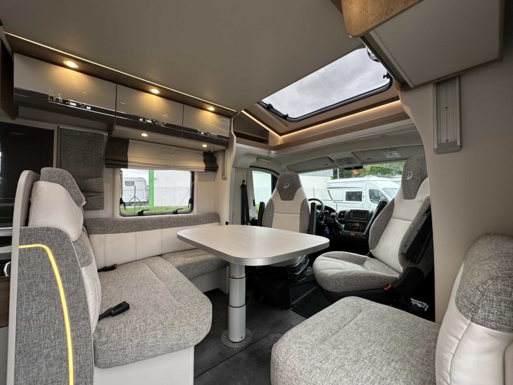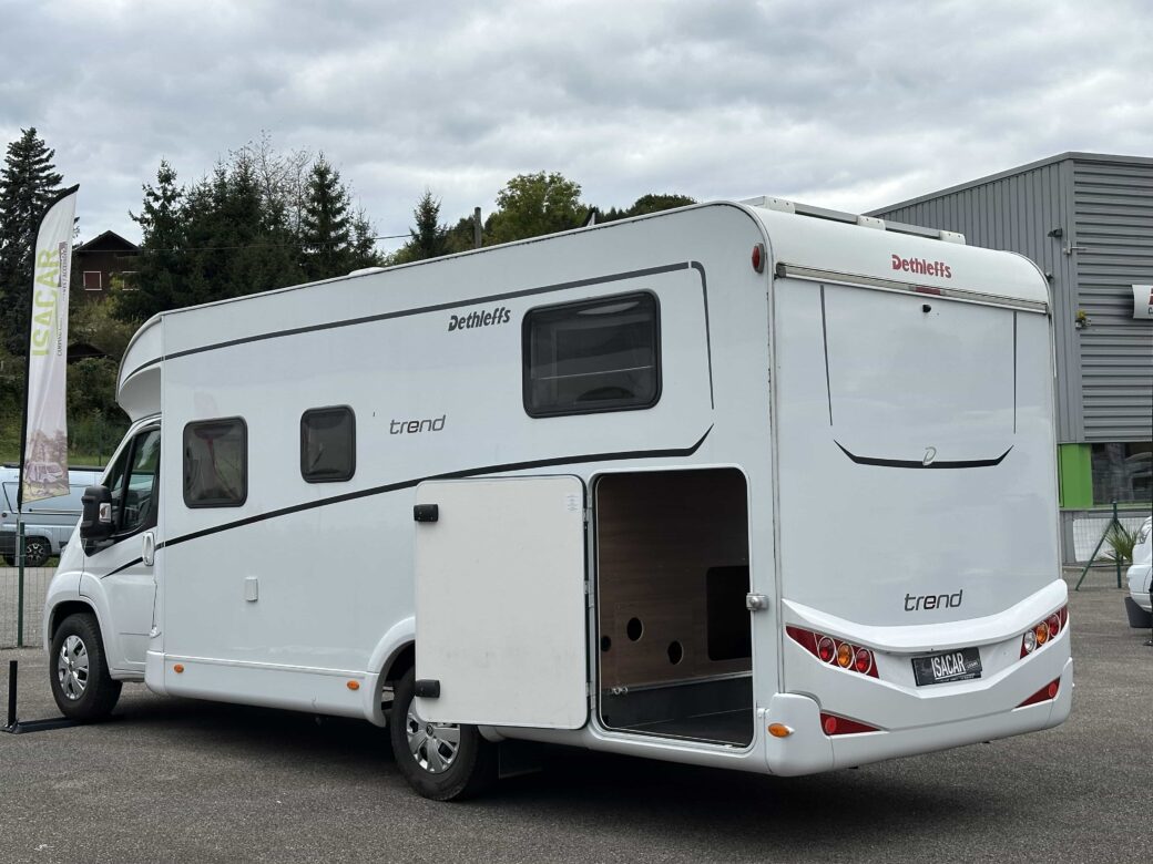 Le Dethleffs Trend T7057 EB est un profilé avec lits jumeaux sur soute garage, maxi salon et douche séparée.
