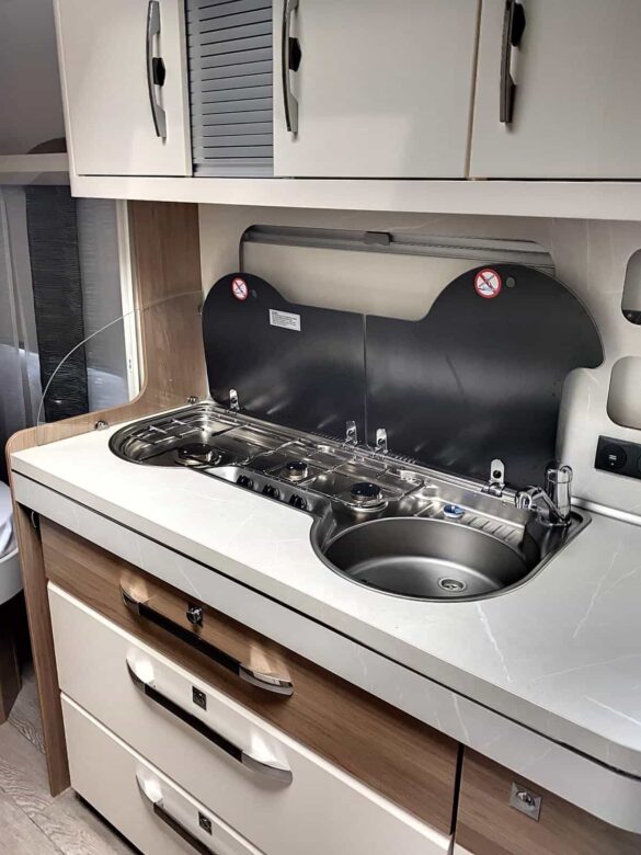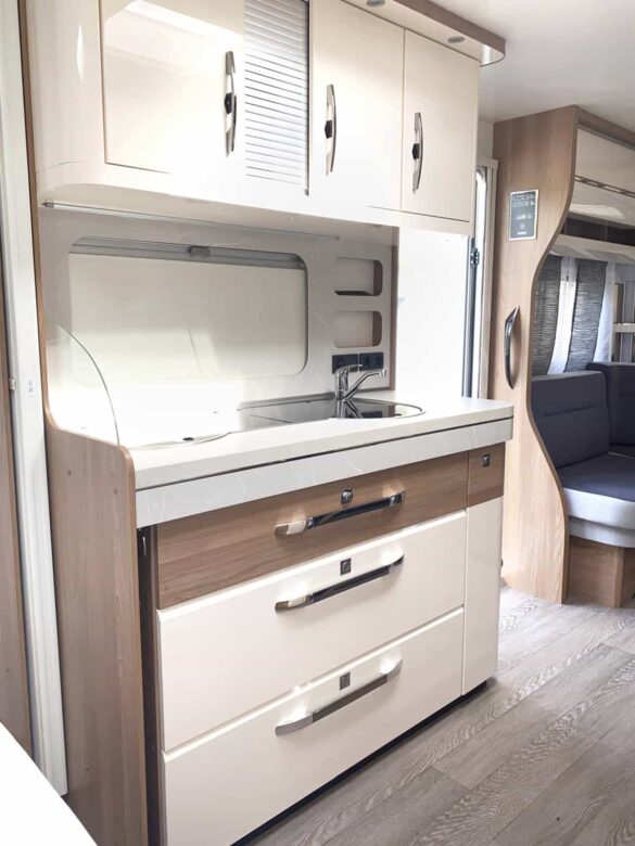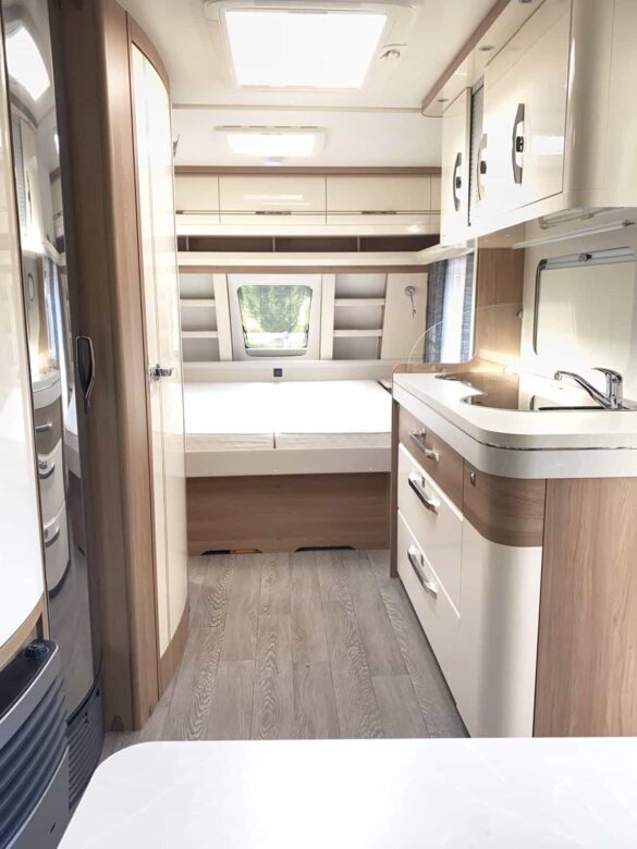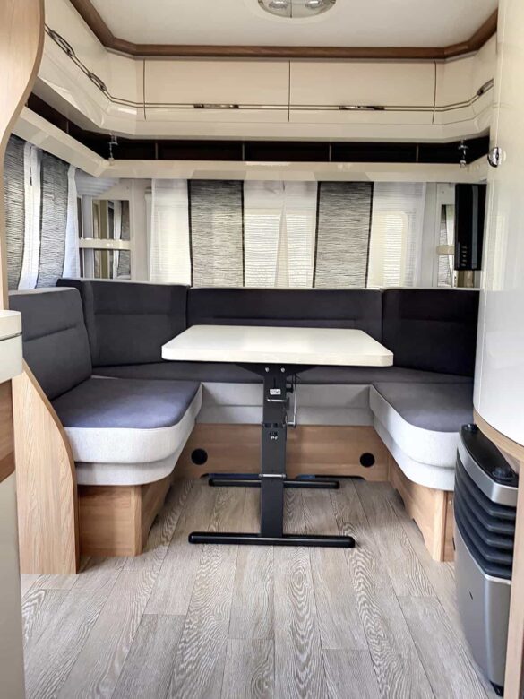 Caravane Hobby 540UFF, caravane idéale. Implantation chic et spacieuse.