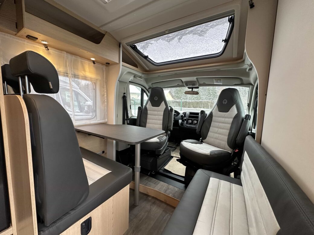 Son séjour se veut spacieux grâce à un siège latéral et aux sièges cabine pivotants. Il est également transformable en couchage d’appoint.